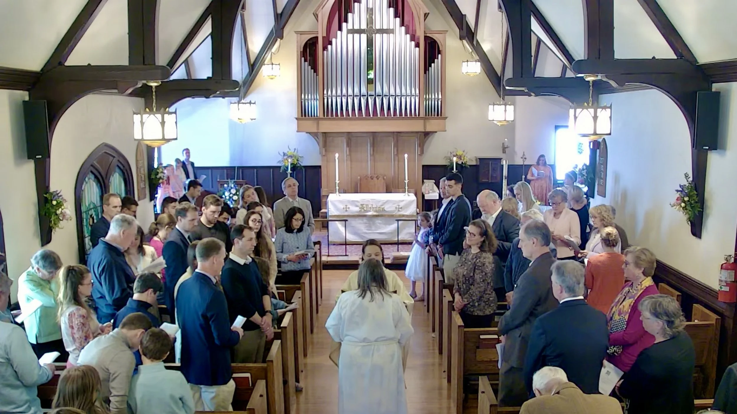 We sing out “Alleluia” to proclaim Jesus’ resurrection. The sanctuary is filled with flowers, color, music, and people on this joyful day.